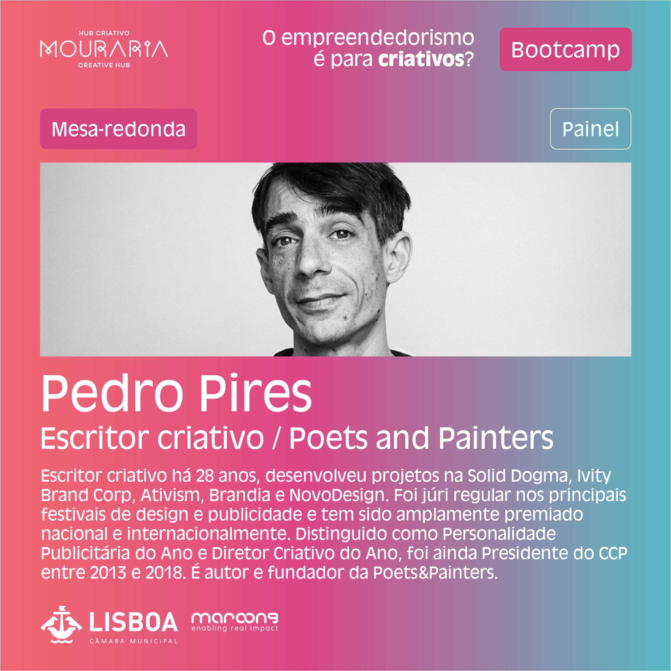 Pedro Pires - fundador da Poets and Painters, Isabela Berger - Brand design specialist na Go Vocal, Sebastião Teixeira - Criativo Graficalismo + Maison Pixel e Filipe Cardigos e Sérgio Gameiro - fundadores da Wetheknot, convidam-vos a assistir a uma mesa-redonda moderada pela radialista da Antena 3 - Catarina Palma, sobre “O papel da criatividade no empreendedorismo”.